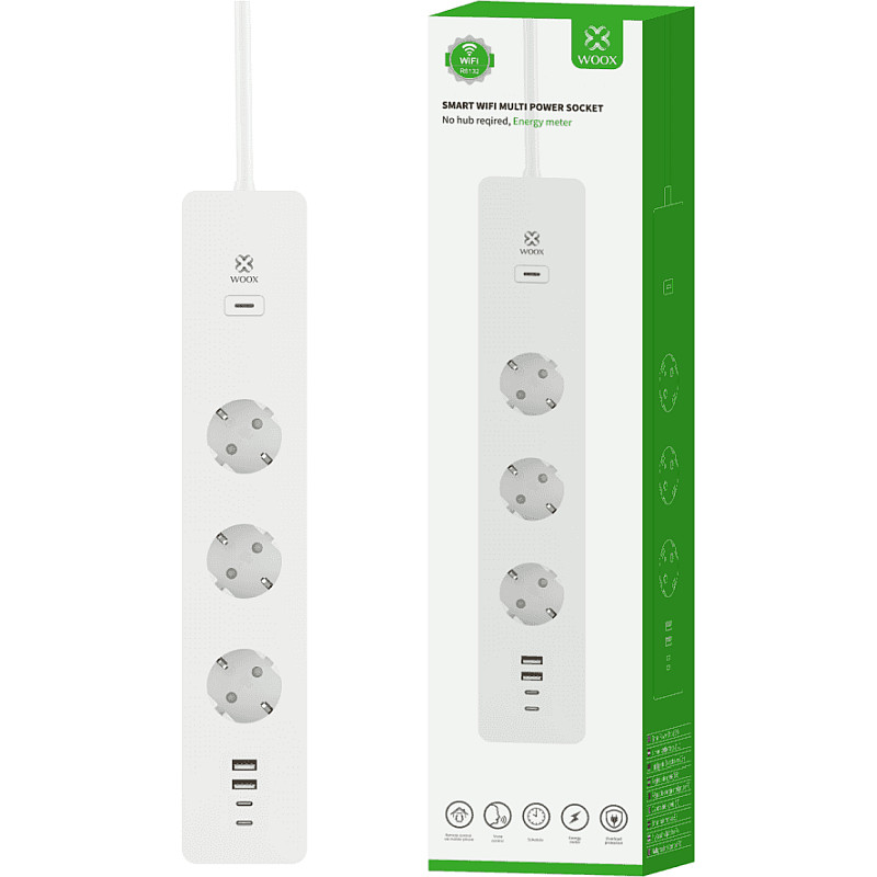 WOOX WiFi Smart multi-utičnica, 3×strujna utičnica, 2×USB-A, 2×USB-C punjač, WooxHome app, glasovna kontrola - Alexa & Google Assistant, 1.5m (R6132)